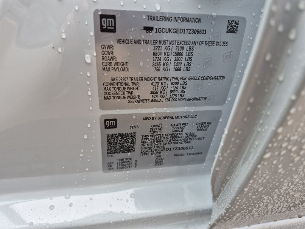 LTZ Convenience Package II: 2nd Row Heated Outboard Seats; Power Sliding Rear Window with Rear Defogger; Universal Home Remote; Adaptive Cruise Control. Technology Package: 15" Diagonal Multicolor Head-Up Display; Bed View Camera; Rear Camera Mirror. Preferred Equipment Group 1LZ: LED Cargo Area Lighting; Driver Memory; SiriusXM with 360L Trial Subscription; Bluetooth® For Phone; Remote Vehicle Starter System; In-Vehicle Trailering System App; Electric Rear-Window Defogger; 5.3L EcoTec3 V8 Engine; Theft Deterrent System (unauthorized Entry); Front Rain-Sensing Wipers; LTZ Plus Package; Heated Steering Wheel; Trailering Package; Up-Level Rear Seat with Storage Package; Standard Tailgate; 120-Volt Interior Power Outlet; Front LED Fog Lamps; Tire Pressure Monitoring System; Heated Driver and Front Outboard Passenger Seats; Steering Wheel Audio Controls; Teen Driver; Dual Rear USB Ports (charge Only); Color-Keyed Carpeting Floor Covering; OnStar Services Capable; Front Rubberized Vinyl Floor Mats; Rear Rubberized-Vinyl Floor Mats; Power Front Passenger Windows with Express Up/down; Deep-Tinted Glass; 12.3" Multicolor Reconfigurable Digital Display; 10-Way Power Driver Seat with Lumbar; Chrome Mirror Caps; Electronic Cruise Control; Power Rear Windows with Express Down; Chevy Safety Assist; Integrated Trailer Brake Controller; Hitch Guidance with Hitch View; Single-Speed Transfer Case; Power Front Windows with Driver Express Up/down; Wrapped Steering Wheel; Power Tailgate; 275/60R20 AS BW Tires; Front Frame-Mounted Black Recovery Hooks; Keyless Open and Start; 10-Way Power Passenger Seat Adjuster with Lumbar; Outside Heated Power-Adjustable Mirrors; Auto-Dimming Inside Rearview Mirror; Rear Wheelhouse Liners; Auto-Locking Rear Differential. Power-Retractable Assist Steps. Polar White Tricoat. Underseat Storage. **Equipment listed is based on original vehicle build and subject to change. Please confirm the accuracy of the included equipment by calling the dealer prior to purchase.**