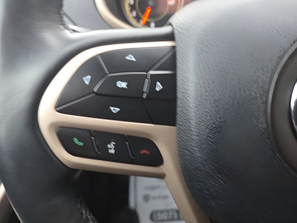 See what's behind you with the back up camera on this mid-size suv. The installed navigation system will keep you on the right path. This model offers Automatic Climate Control for personalized comfort. The leather seats in this mid-size suv are a must for buyers looking for comfort, durability, and style. Keep your hands warm all winter with a heated steering wheel in the Jeep Cherokee . This 2017 Jeep Cherokee features a hands-free Bluetooth® phone system. This model is equipped with the latest generation of XM/Sirius Radio. See the road and the surrounding area better with the Xenon HID headlamps on it. Once you have these you'll want them on all your cars. With the keyless entry system on the Jeep Cherokee you can pop the trunk without dropping your bags from the store. This mid-size suv shines with clean polished lines coated with an elegant white finish. It has four wheel drive capabilities.