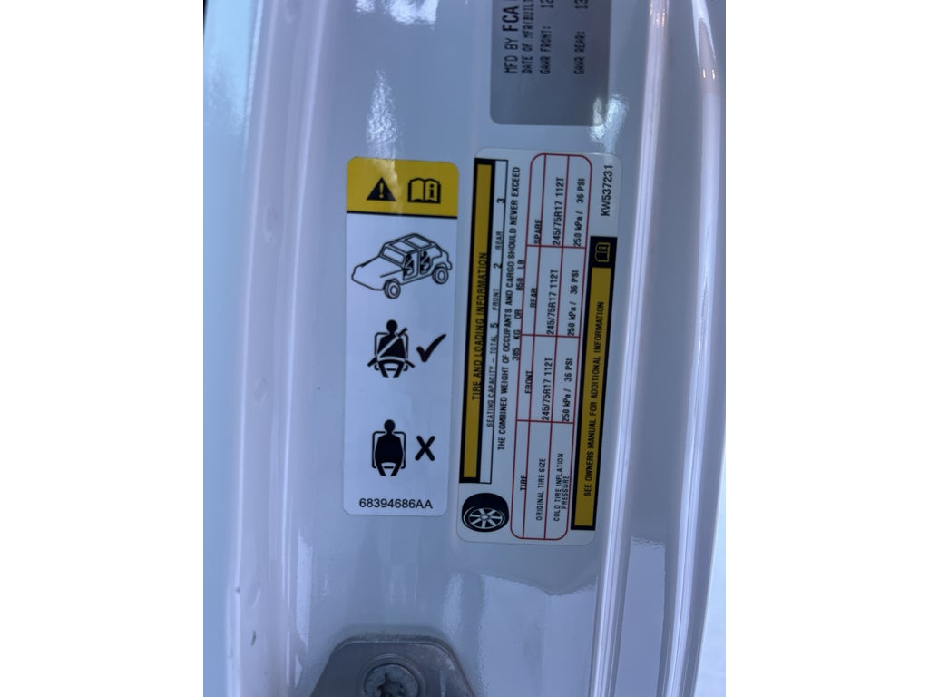 See what's behind you with the back up camera on this unit. The vehicle has satellite radio capabilities. Bluetooth® technology is built into this Jeep Wrangler, keeping your hands on the steering wheel and your focus on the road. Never get into a cold vehicle again with the remote start feature on this unit. This unit is equipped with the latest generation of XM/Sirius Radio. Quickly unlock this vehicle with keyless entry. This model shines with clean polished lines coated with an elegant white finish. When you encounter slick or muddy roads, you can engage the four wheel drive on this vehicle and drive with confidence. The vehicle has a V6, 3.6L high output engine. Set the temperature exactly where you are most comfortable in this mid-size suv. The fan speed and temperature will automatically adjust to maintain your preferred zone climate. Electronic Stability Control is one of many advanced safety features on this model.