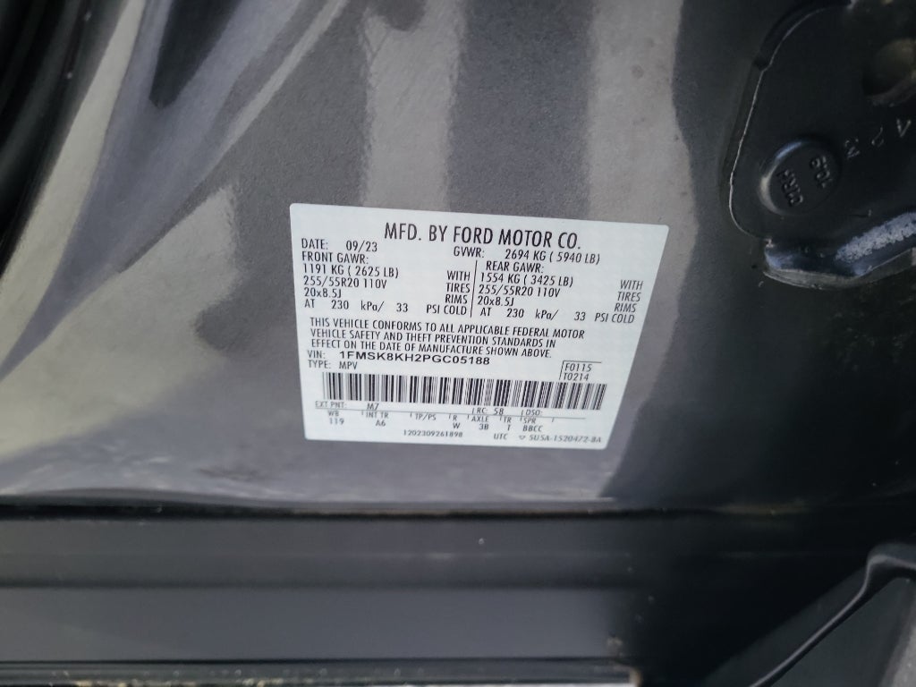 Equipment Group 250A: 20" Machined Aluminum Wheels with Painted Pockets; Heated ActiveX Trimmed Captain's Chairs with Miko Inserts; 3.58 Non-Limited-slip Rear Axle Ratio; 10-Speed Automatic Transmission; 2.3L EcoBoost I-4 Engine; P255/55R20 AS BSW Tires; 6. 160 lbs GVWR; B&O Sound System by Bang and Olufsen. Twin Panel Moonroof. Class IV Trailer Tow Package. Front and Second Row Floor Liners (16B). **Equipment listed is based on original vehicle build and subject to change. Please confirm the accuracy of the included equipment by calling the dealer prior to purchase.**