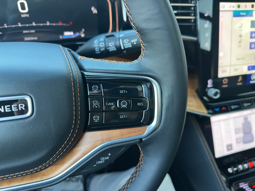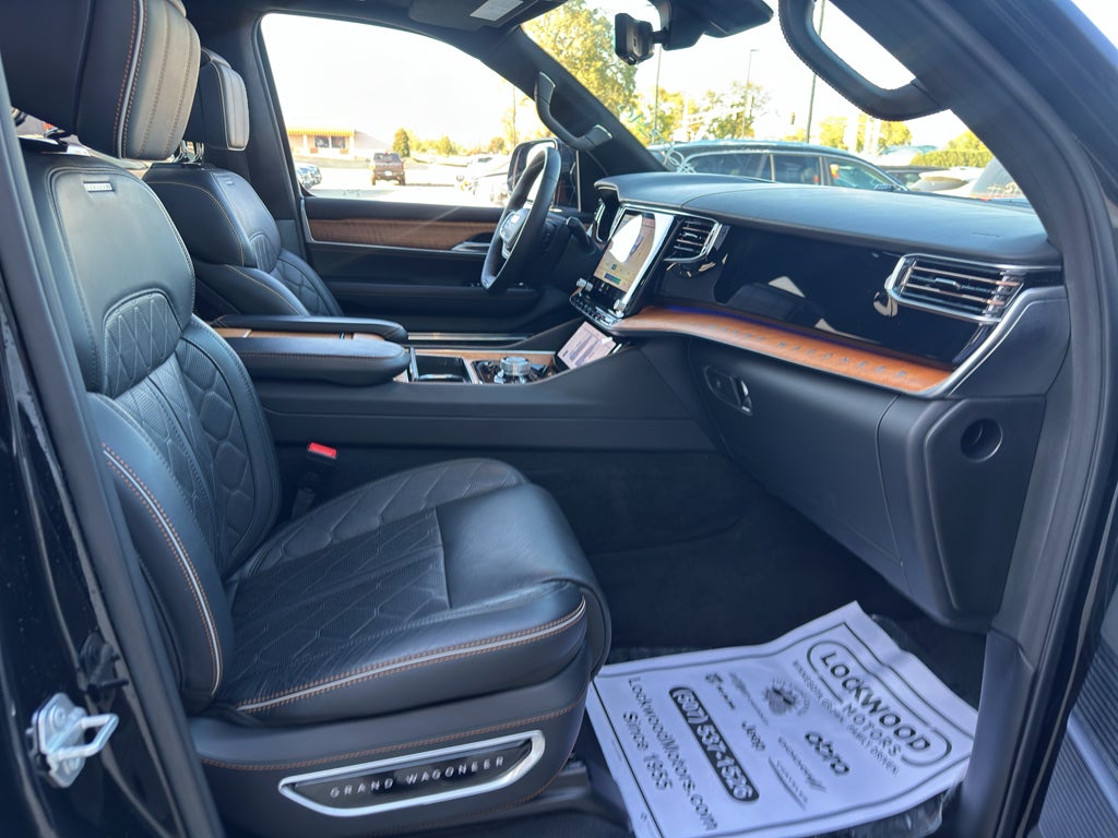 The installed navigation system will keep you on the right path. Start this 2024 Jeep Grand Wagoneer from inside with remote start. Bluetooth® technology is built into this 2024 Jeep Grand Wagoneer , keeping your hands on the steering wheel and your focus on the road. The leather seats in this model are a must for buyers looking for comfort, durability, and style. Keep your hands warm all winter with a heated steering wheel in this 1/2 ton suv . Protect this 1/2 ton suv from unwanted accidents with a cutting edge backup camera system. Apple CarPlay: Seamless smartphone integration for this 2024 Jeep Grand Wagoneer - stay connected and entertained on the go! This 1/2 ton suv has automated speed control that adjusts to maintain a safe following distance, enhancing highway driving convenience. The vehicle offers Android Auto for seamless smartphone integration. The vehicle has a 6 Cyl, 3.0L high output engine.
